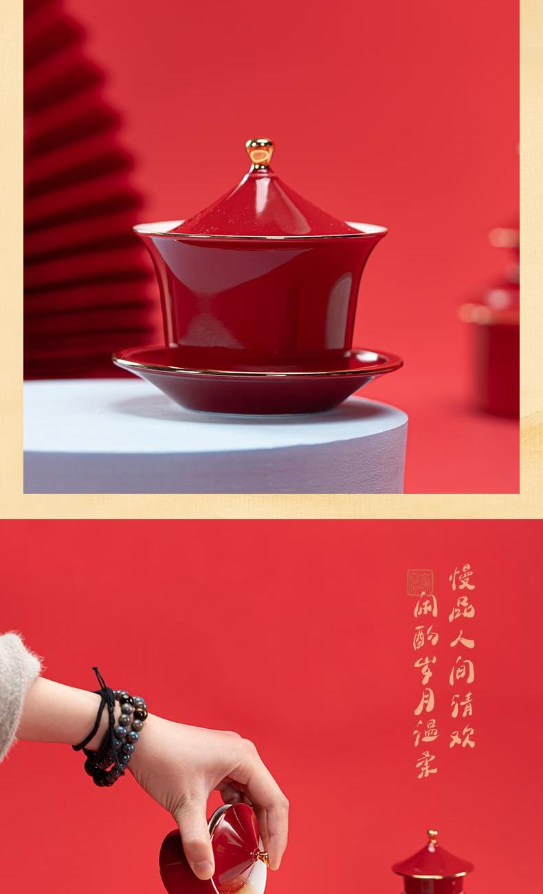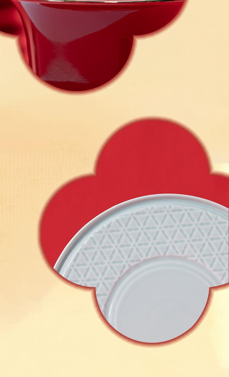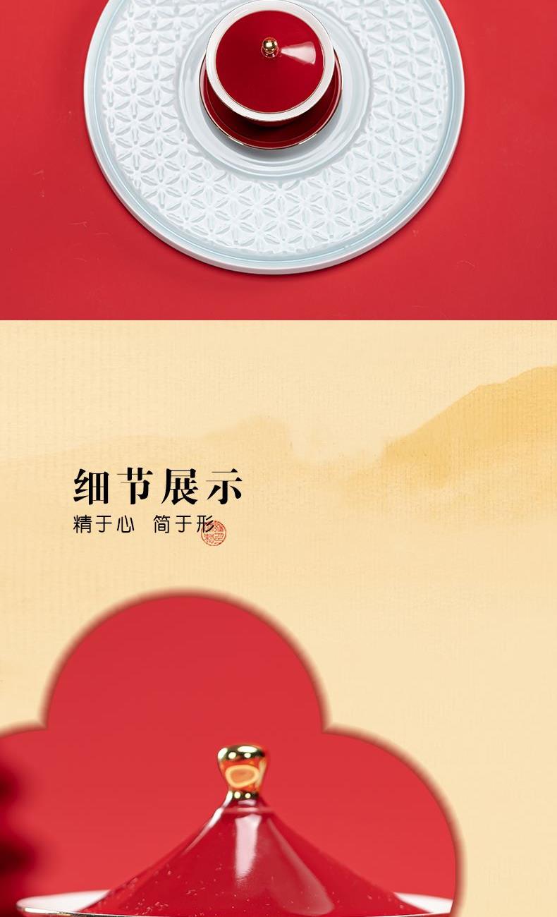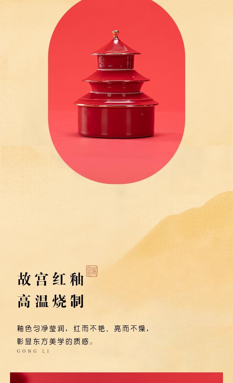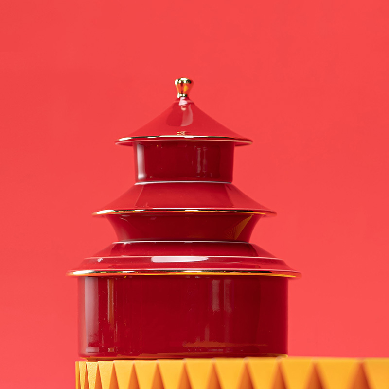 1.以天坛祈年殿为形,融东方建筑美学与茶器功能于一体,开合之间,既是日常泡茶的雅趣,闭合之时,还原天坛祈年的形制,金顶红檐,复刻国之瑰宝的庄严雅致。 2.干泡盘将祈年殿基座与三交六椀窗花融为一体。三交六椀窗花内涵天地,寓意天地相交、化生万物。 3.甄选高纯度故宫红釉,经1300°高温窑变淬炼,釉色匀净莹润,红而不艳、亮而不燥,彰显东方美学的质感。 材 质:高白玉瓷、高硼硅玻璃 容 量:盖碗130ml、茶海280ml、茶杯30ml、水方260ml 包装尺寸:Φ28cm  H12.3cm 配 置:盖碗、茶海、干泡盘各一个,两件式水方一套,茶杯三个,带提手皮革礼盒包装。