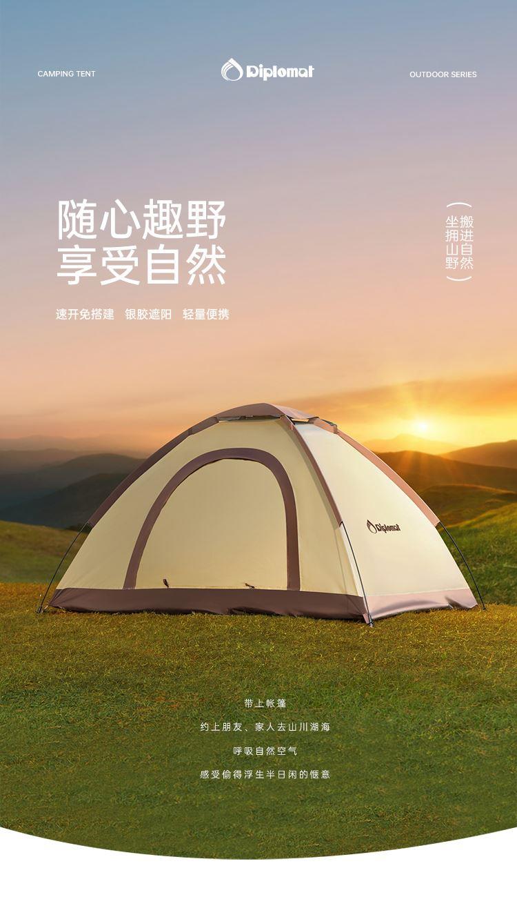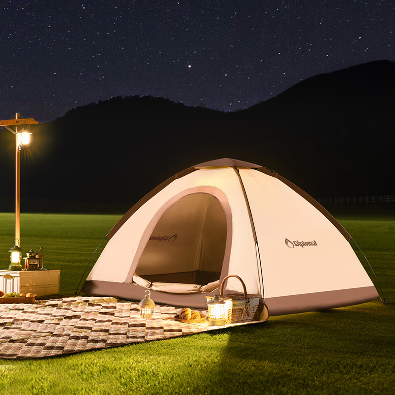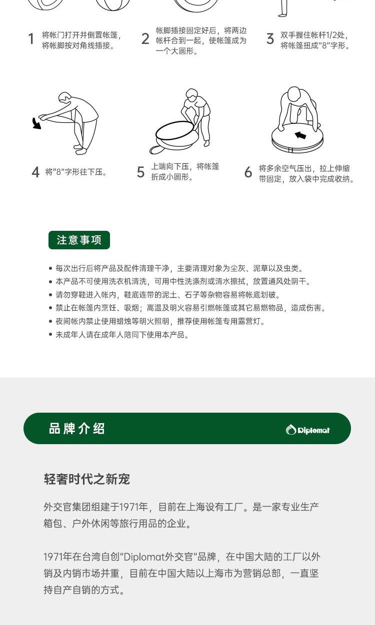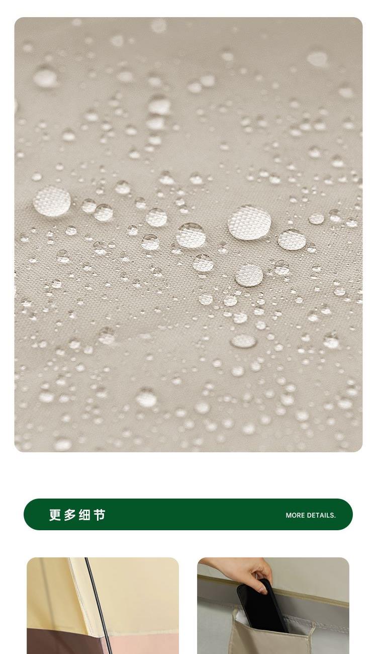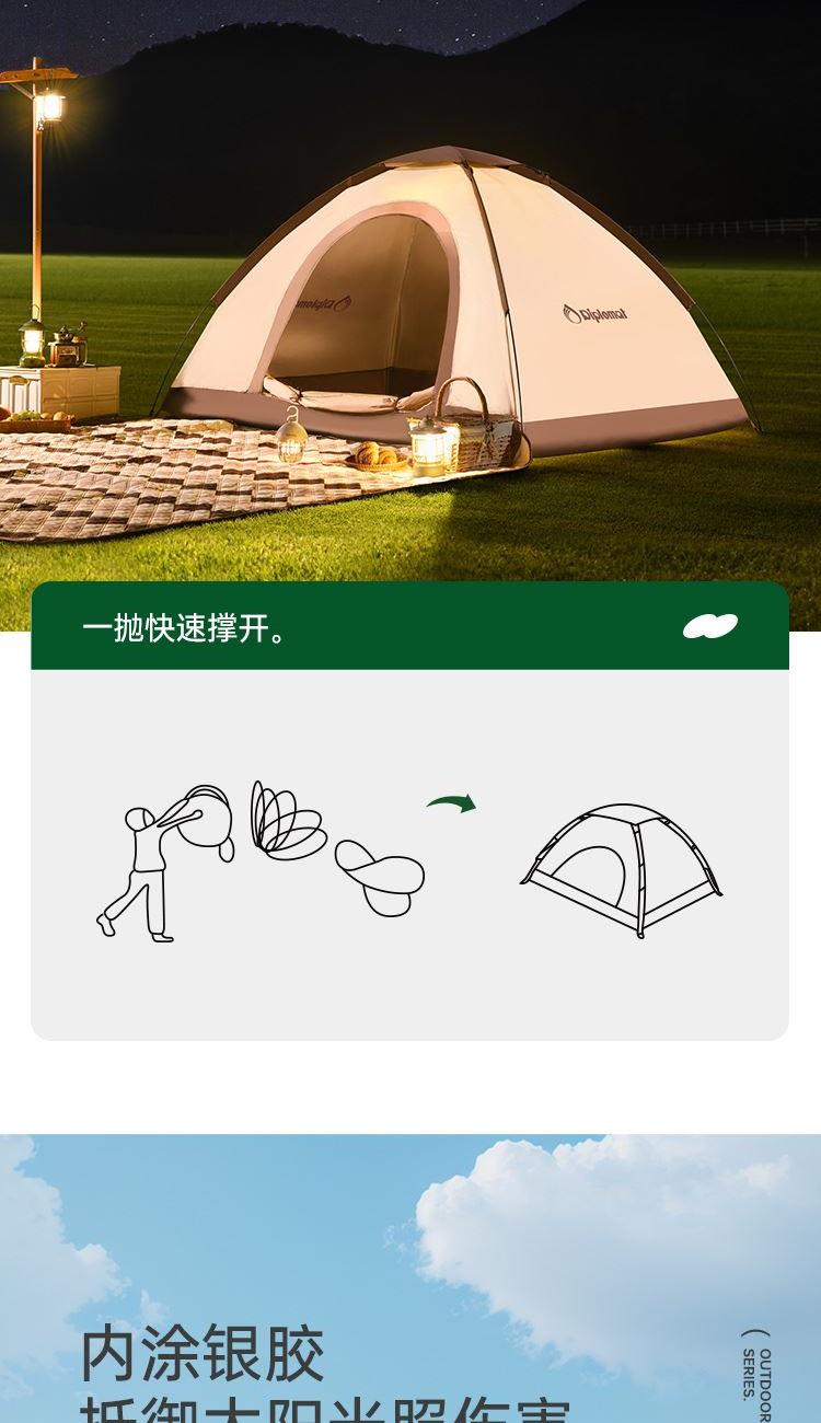 产品尺寸:190x130x100cm 收纳尺寸:55x55x2cm 产品材质:聚酯纤维(涂层除外)+玻璃纤维杆 产品颜色:东方暖茶 产品包装:双肩收纳布袋 1、单开门内附网纱,天窗网纱拼接,加强空气循环。 2、全新折叠科技,一秒速开,开收便捷。 3、帐面及底帐防泼水,银胶防晒。 4、双肩收纳袋,携带方便。
