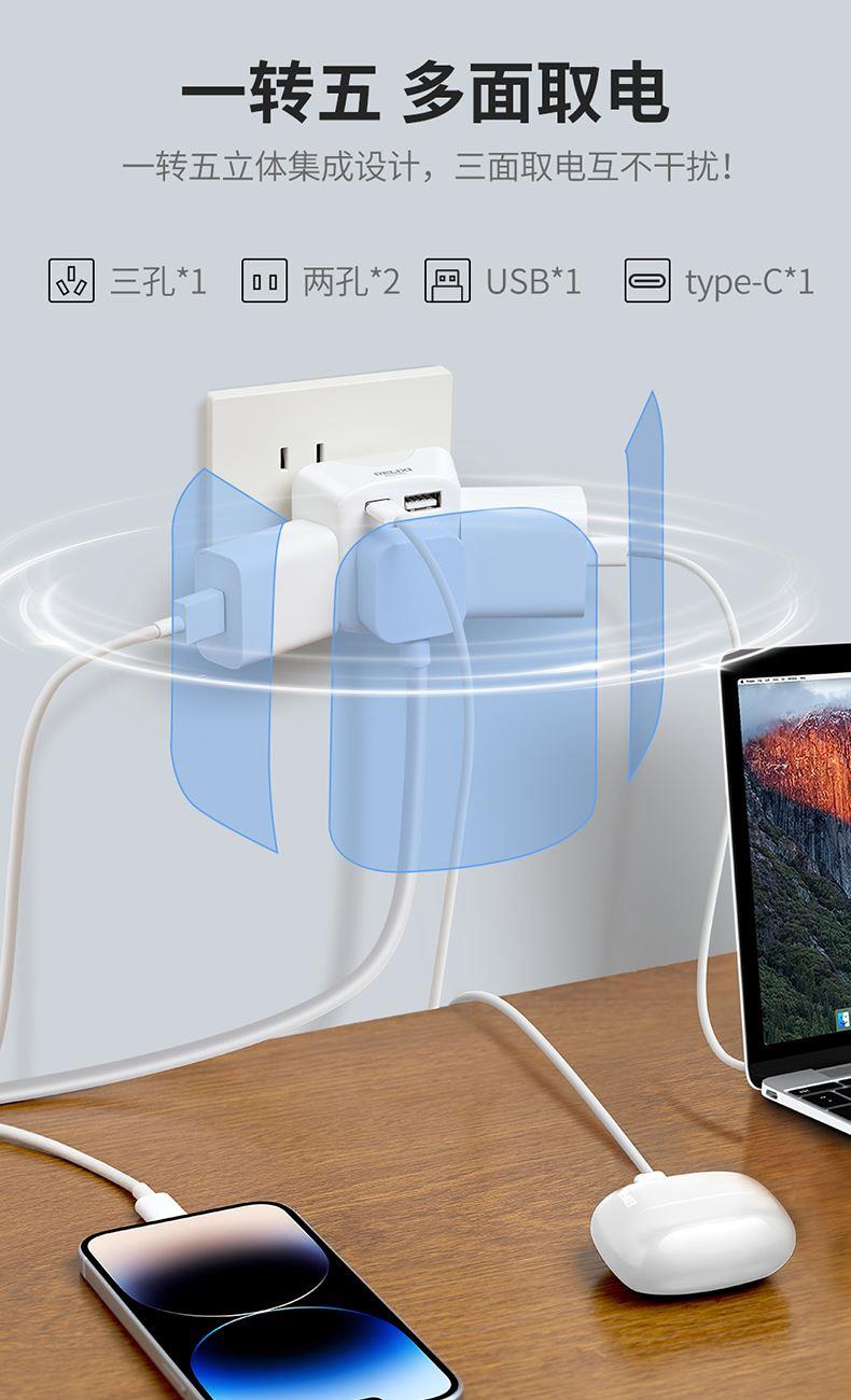 产品型号:DEH-C21U 额定电流:10A 产品颜色:象牙白 额定功率:2500W 额定电压:250V 插座尺寸:58*31.5*54.7mm USB输入:200-240V~50/60HZ MAX0.5A USB输出:单口/多口输出:5V⎓2.4A MAX 产品位数:一位三孔、两位两孔、1USB、1type-c、无线