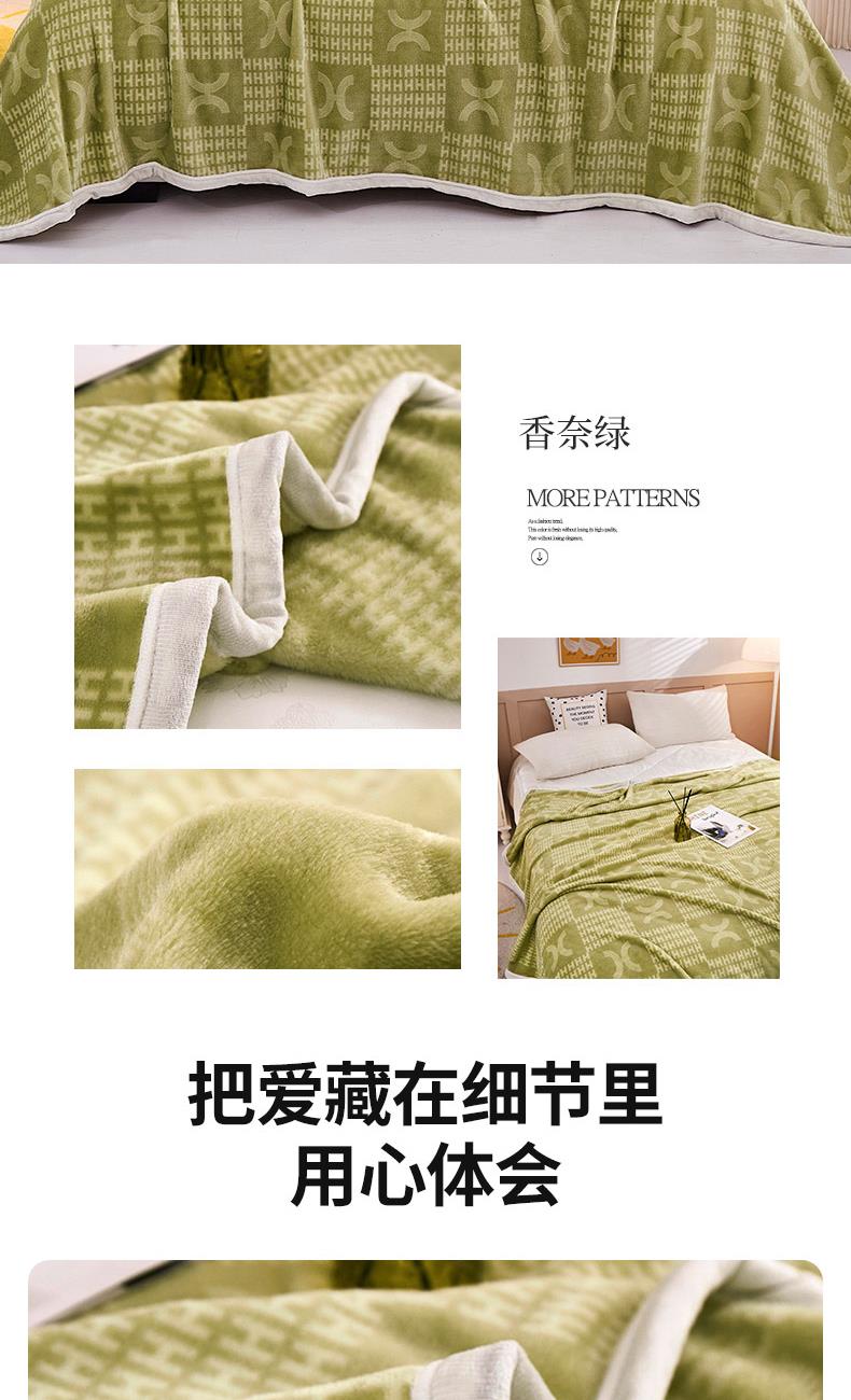 材质:云貂绒(聚酯纤维) 尺寸:180*200cm 产品介绍:1.面料采用A类水洗棉.高支高密,柔软亲肤享受高品质 带来的舒适感 2.触感如脂细腻丝滑,不含任何有害物质, 放心接触更安全双面触感,加宽包边设计更美观.