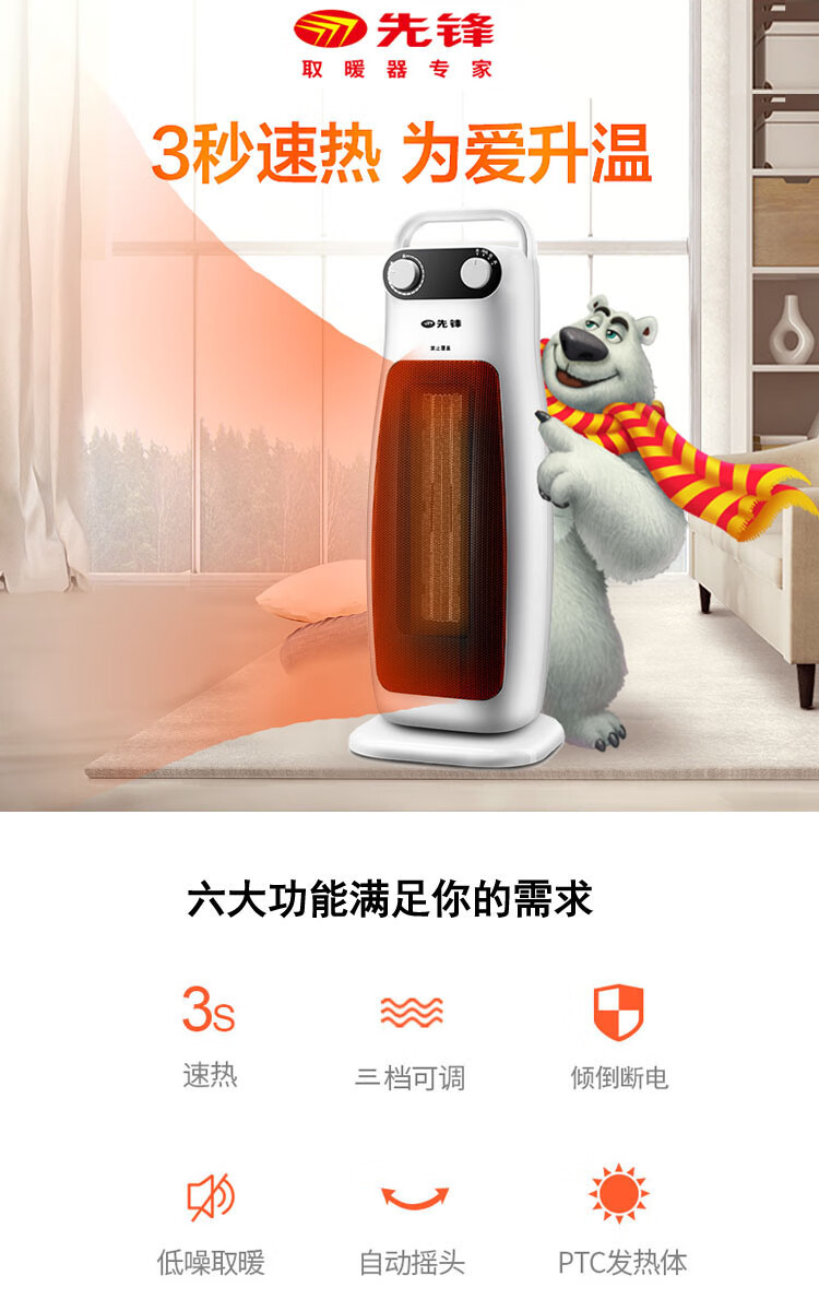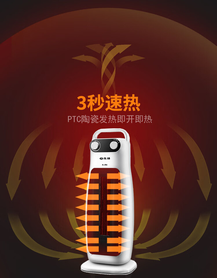产品特点:采用 PTC 陶瓷发热体,发热迅速。外观设计简约,体积小巧,可壁挂或台式使用,节省空间且便于移动,适用于 10-18 平方米左右的空间,如卧室、书房等,能为用户带来温暖舒适的体验。