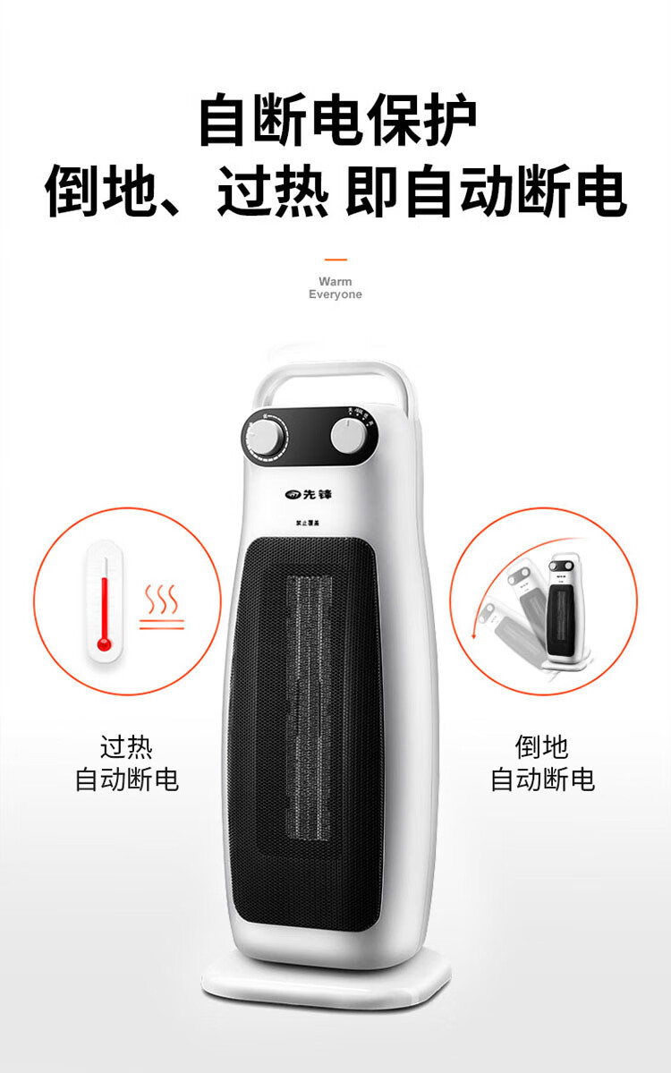 功能参数:控制方式为机械式,不支持定时功能,具备倾倒断电保护功能。部分信息显示其可能有 70 度摇头功能,可加大送风面,且为冷暖两用,弧形出风口设计,无光不干扰。此外,有说法称其具有防水功能,但也有资料显示不防水,若有浴居两用需求,建议进一步确认防水等级相关信息。