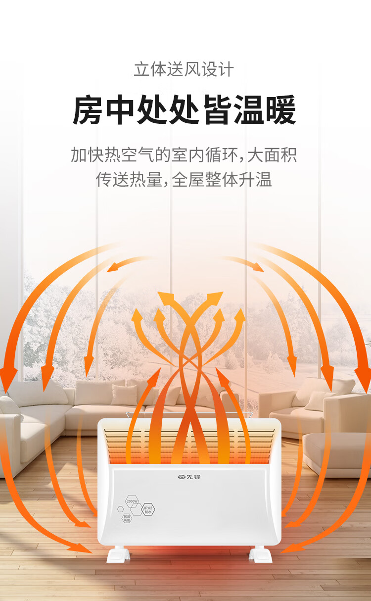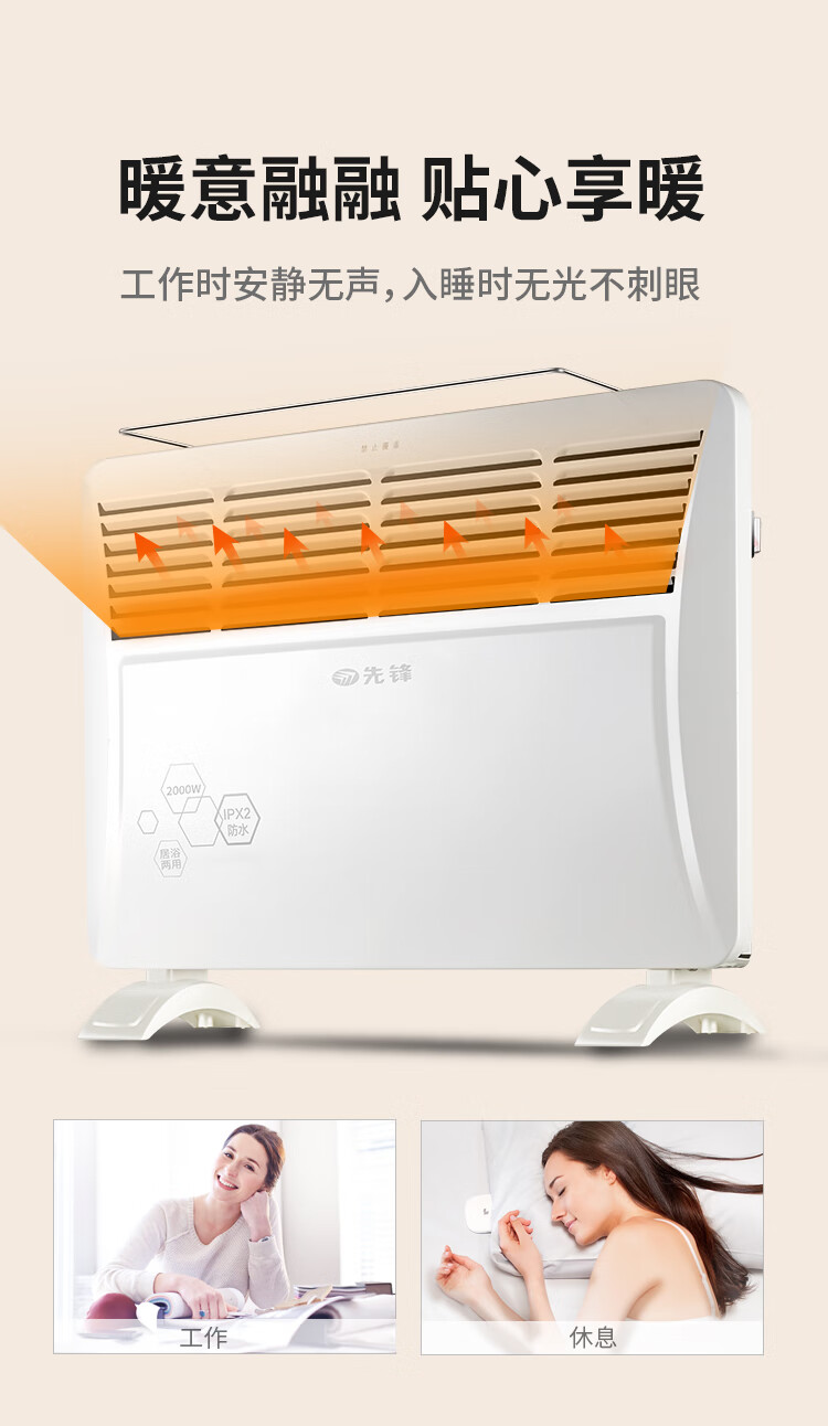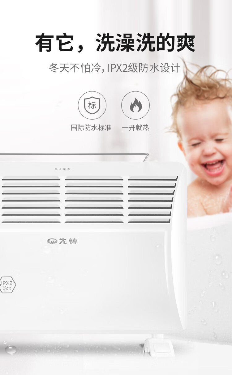 取暖器额定电压 220V,频率 50Hz,有三档功率,分别为 800W、1200W、2000W。控制方式为机械式,具备定时、防水功能,达到 IPX4 防水等级,可居浴两用,还有倾倒断电保护功能,使用安全有保障 。适用面积在 5 - 10㎡,能满足小空间取暖需求,无论是卧室、浴室,都能快速提升室温,带来温暖 。