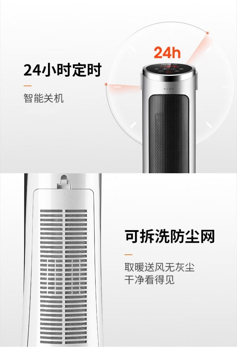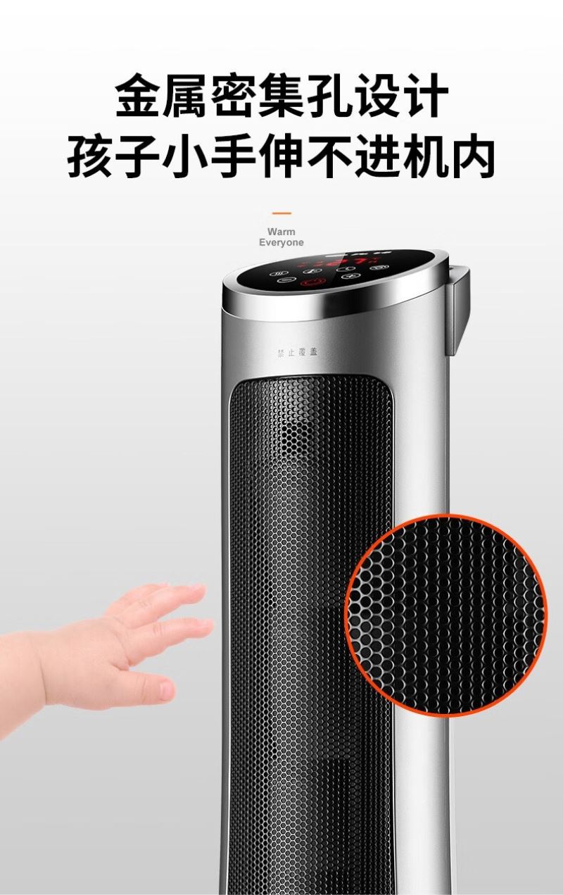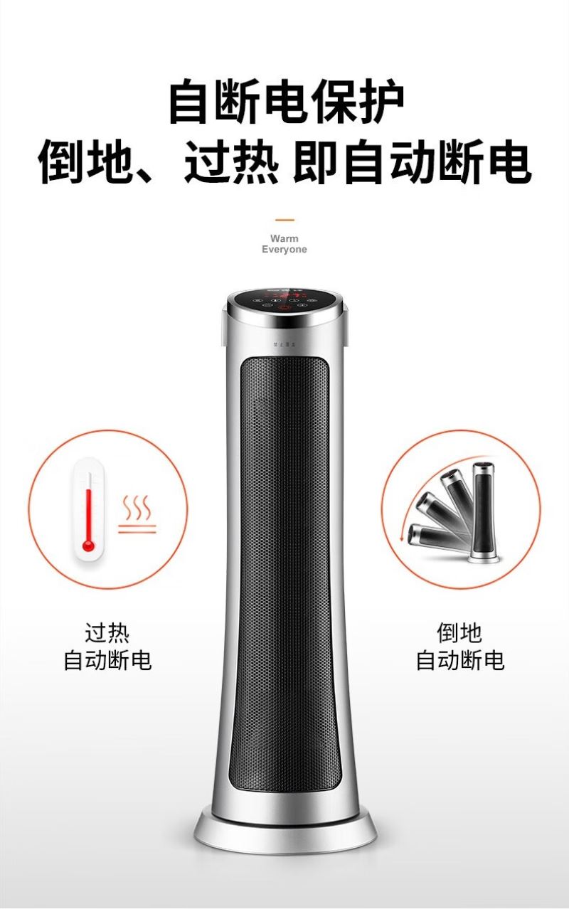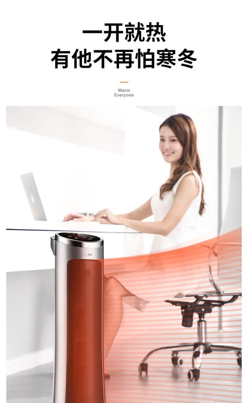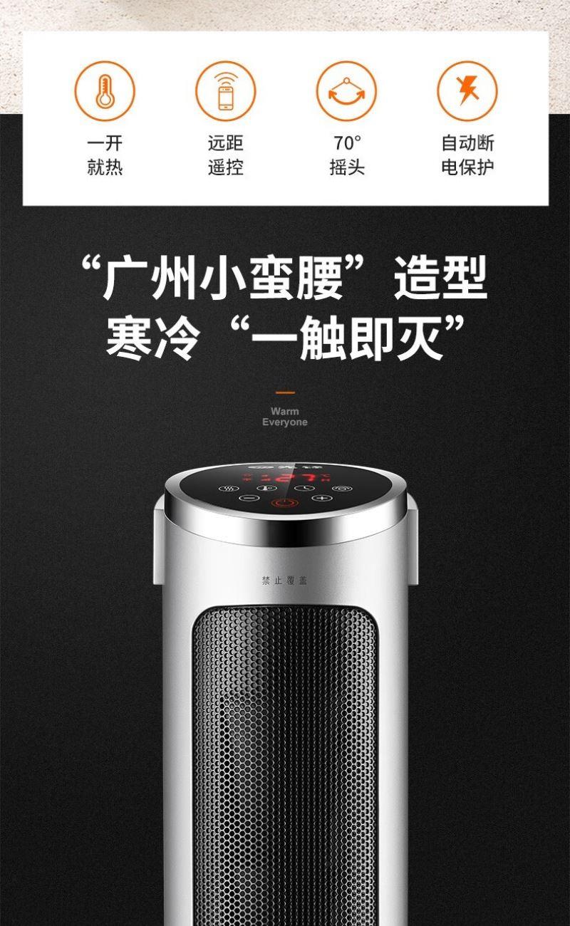 产品特点:外观简约,塔式造型节省空间。采用 PTC 陶瓷加热技术,制热迅速且热量分布均匀。可通过遥控器便捷调节温度和风速,还能设置定时开关机,满足不同场景需求。同时具备过热保护、防干烧保护等,使用安全可靠,且较为节能环保。