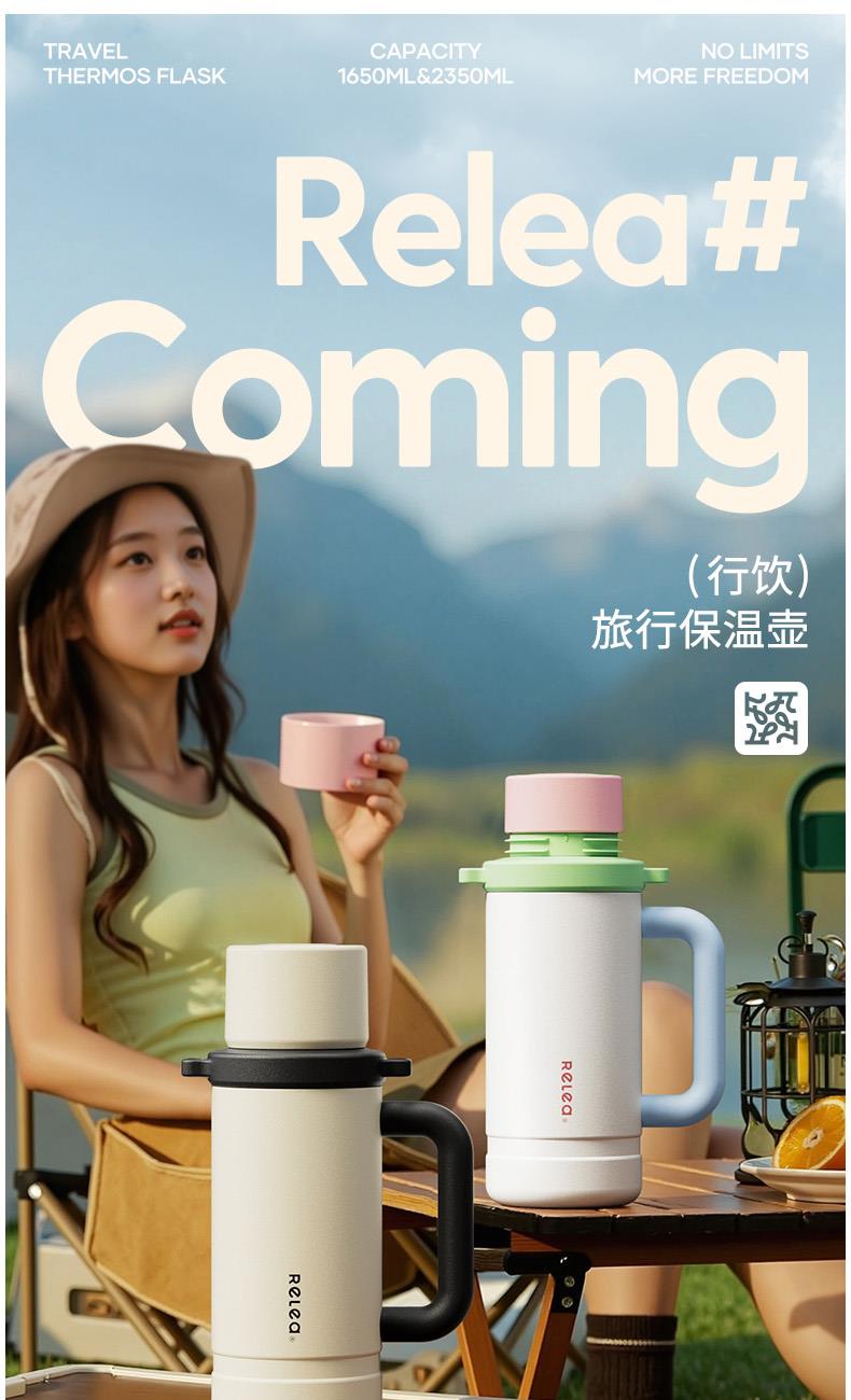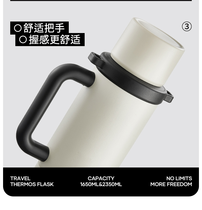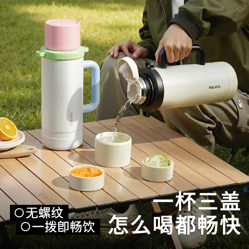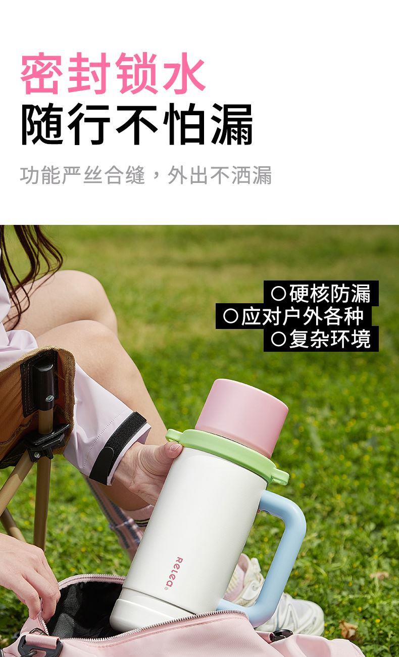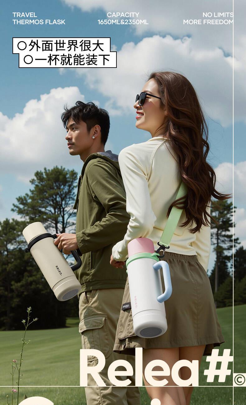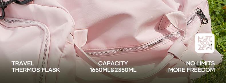 型号:JV022402-2350 颜色:在野白趣野粉 材质:316不锈钢 容量:1650ml/2350ml 此报价为2350ml 1:316L不锈钢内胆,耐腐蚀。抗酸碱,无异味 2:长效保温保冷 3:一杯三盖三种分享方式