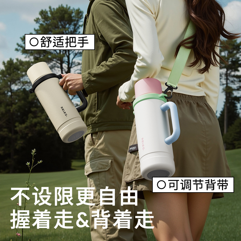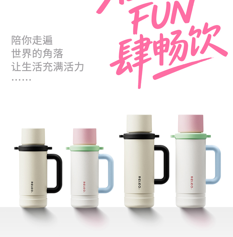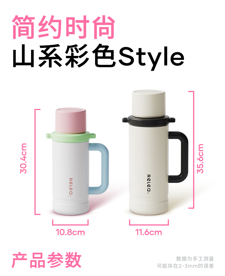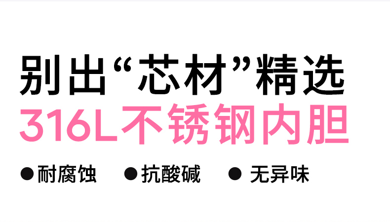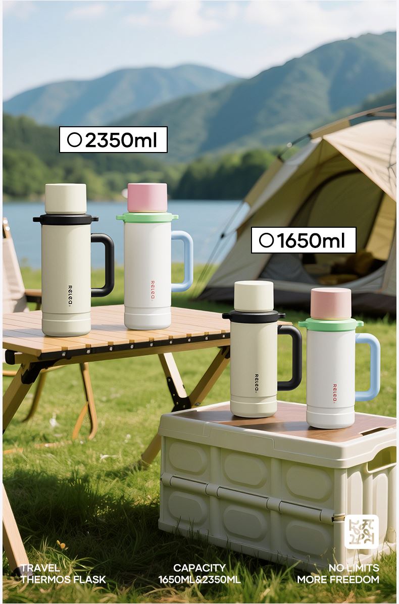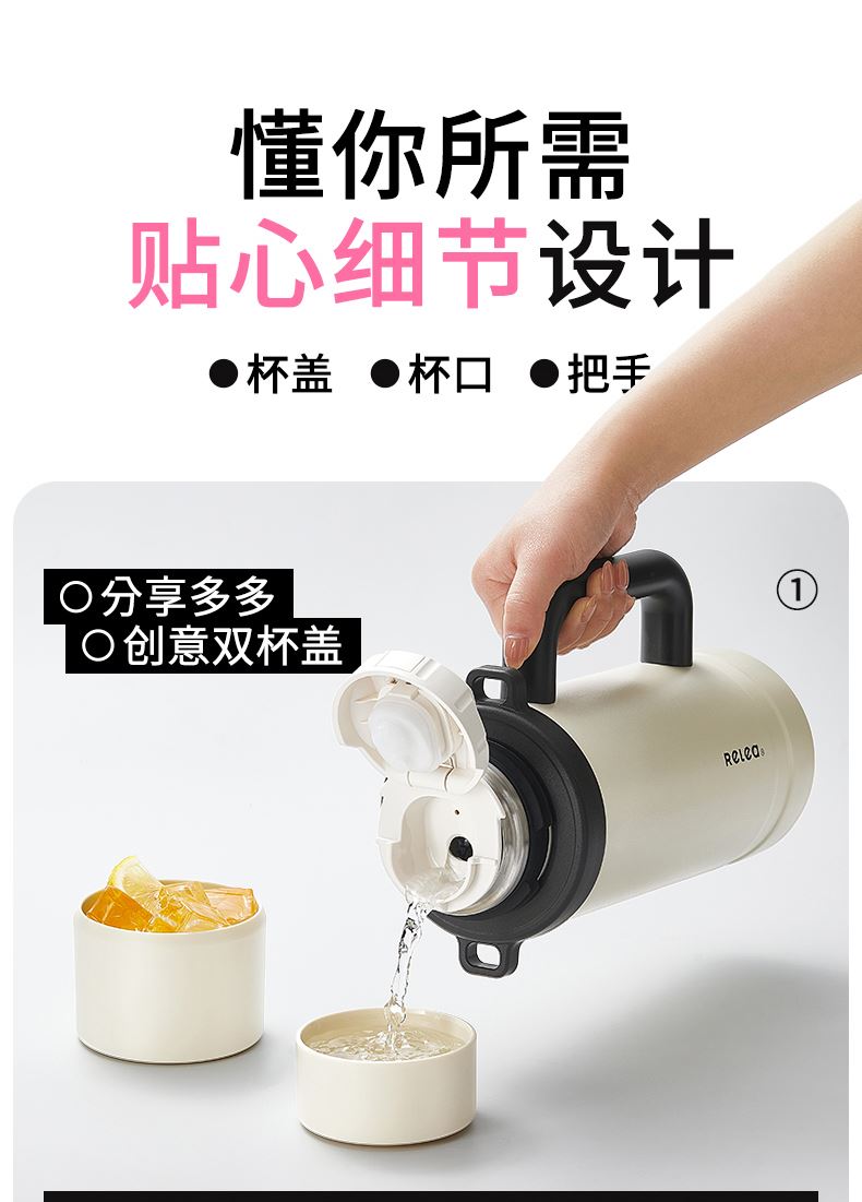 型号:JV022402-2350 颜色:在野白趣野粉 材质:316不锈钢 容量:1650ml/2350ml 此报价为2350ml 1:316L不锈钢内胆,耐腐蚀。抗酸碱,无异味 2:长效保温保冷 3:一杯三盖三种分享方式