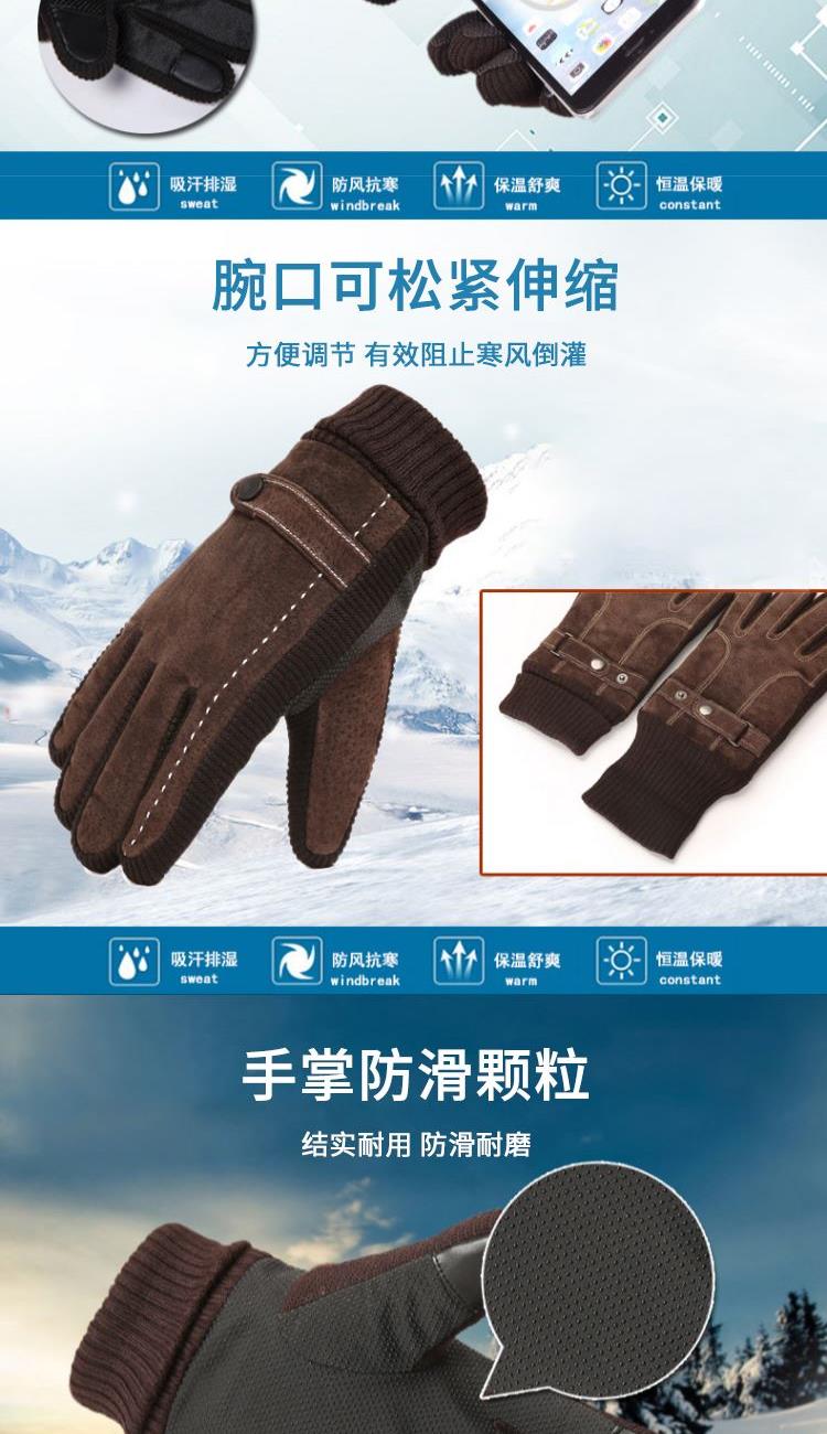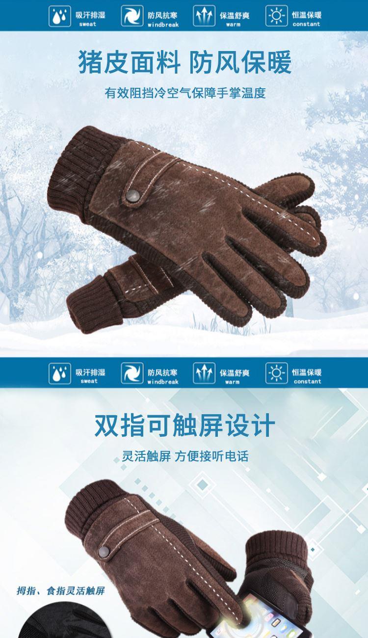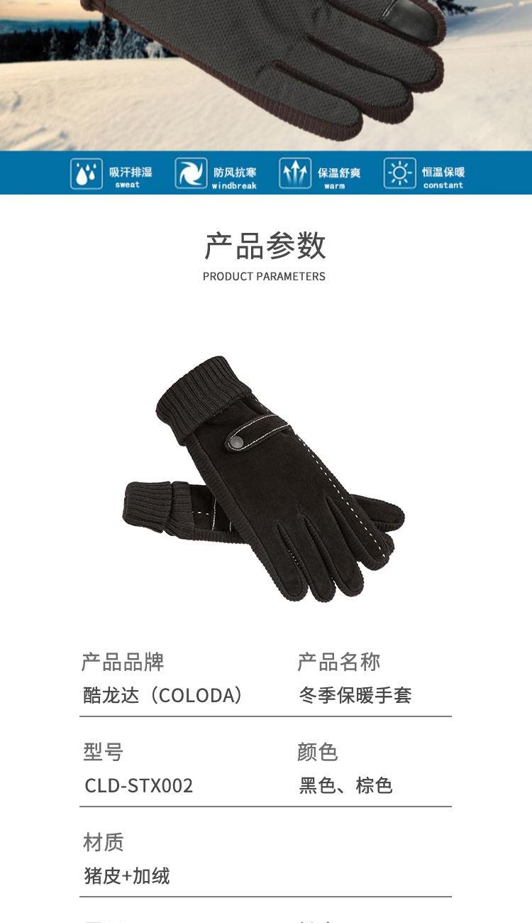 酷龙达冬季保暖猪皮触屏手套均码CLD-STX002