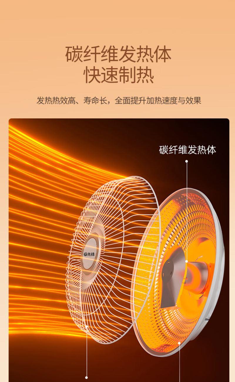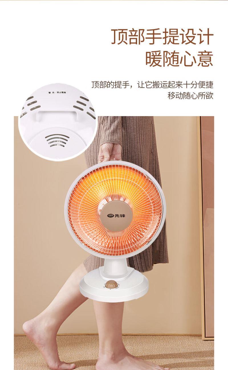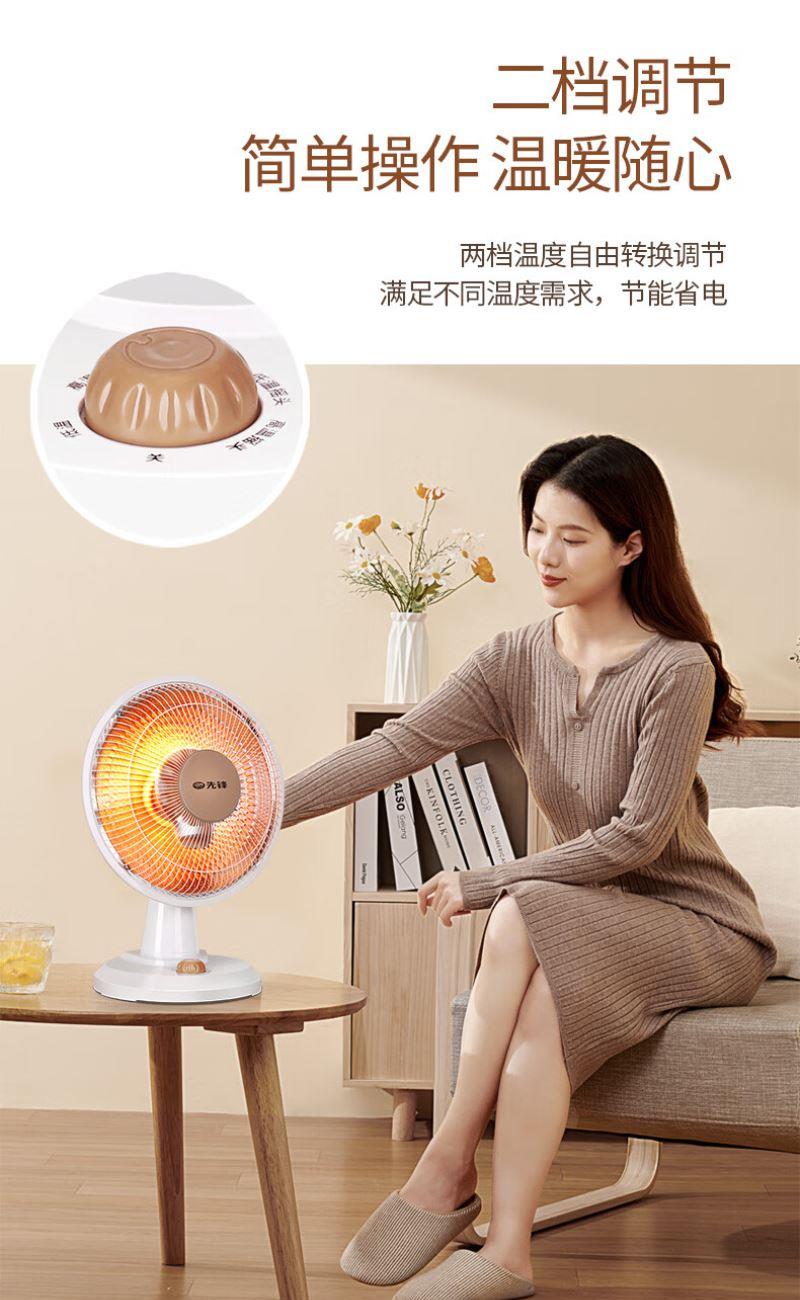 加热方式:通常先锋小太阳采用石英管加热或红外反射式加热,利用石英管发热快的特性,快速提升温度。 功率:可能设有两档功率,功率或在 1500W-2200W 之间,可根据需求选择不同功率档位。 额定电压:一般为 220V/50Hz,符合国内家庭用电标准。 适用面积:参照同系列产品,适用面积在 10㎡以下,适合小空间取暖,如卧室、书房局部区域等。