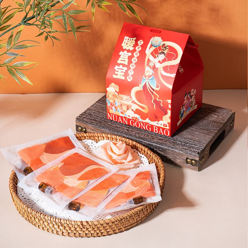 礼盒尺寸:130*170*130mm 产品内置:艾草精油磁疗暖宫宝*4套 久坐宫寒、经期胀痛,恒温热敷直抵小腹,驱散寒气超给力,让每个特殊时刻都被暖意包围,舒服过每一天!