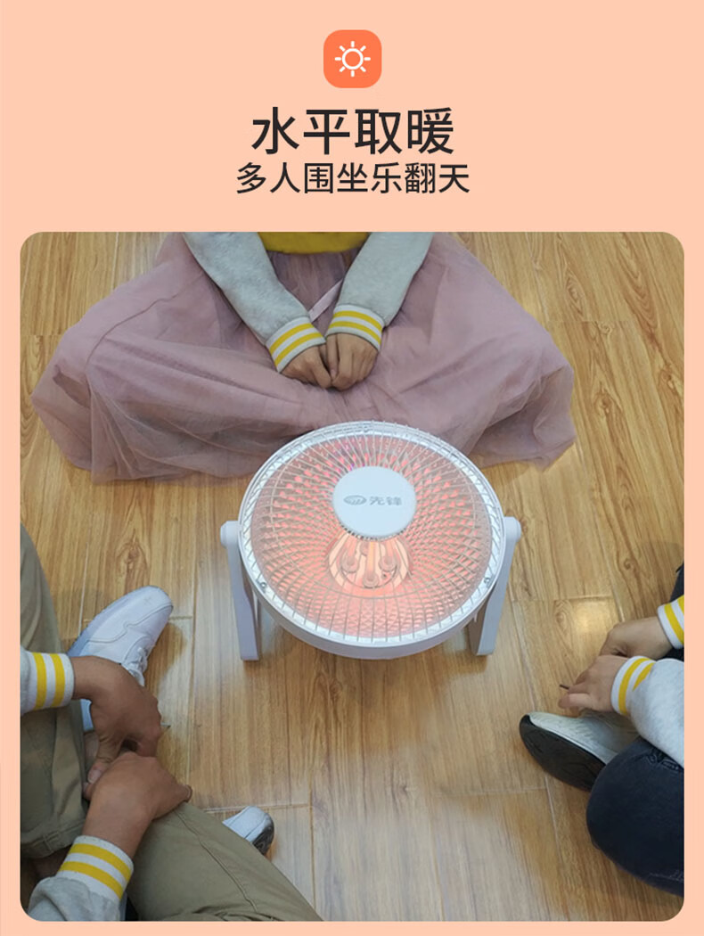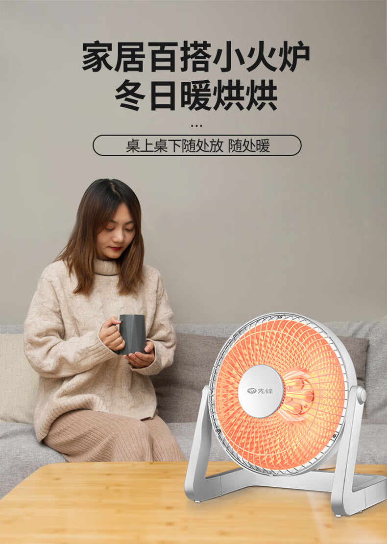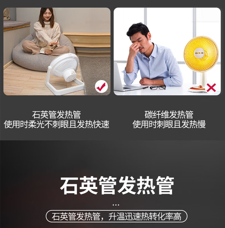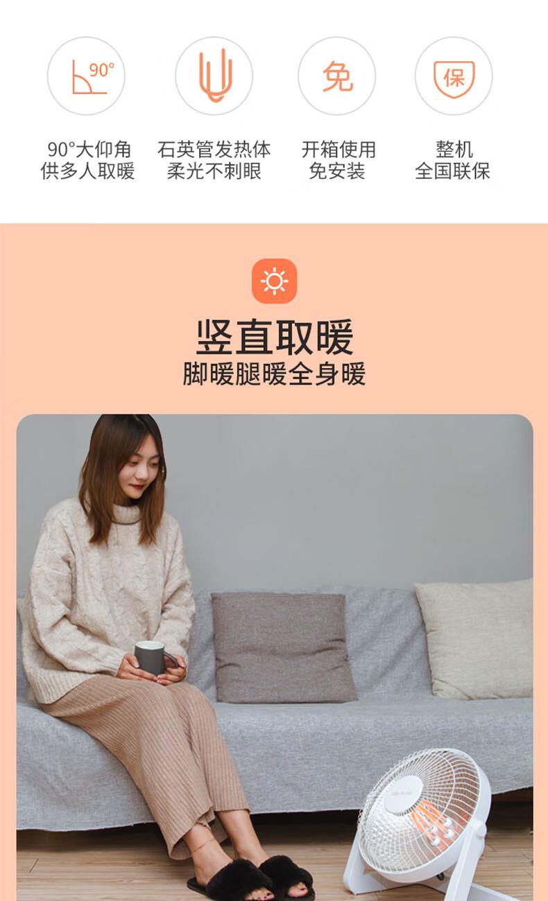 极简外观设计风格 双全网罩60根钢丝,外径304mm,内圈钢丝直径1.5mm 外圈钢丝直径2.5mm 90度俯仰,机体竖直、水平可实现单人、多人取暖 双U管发热体,持久热源 钻石晶格反射盘,柔光不伤眼 倾倒自动断电,老人小孩放心用 双圈加密网罩60根钢丝,外径304mm,内圈钢丝直径1.5mm 外圈钢丝直径2.5mm 整机无需组装,拿出就可以使用
