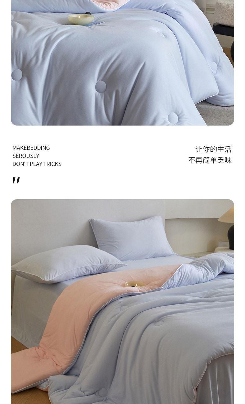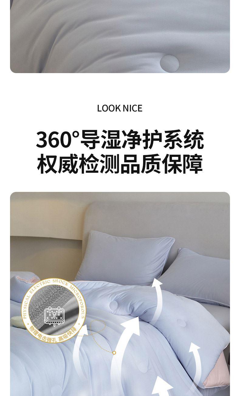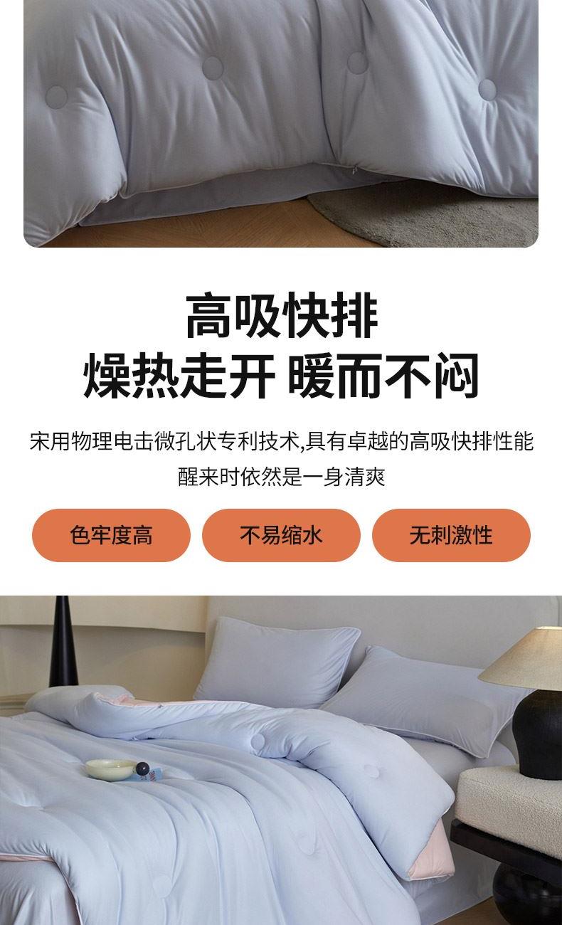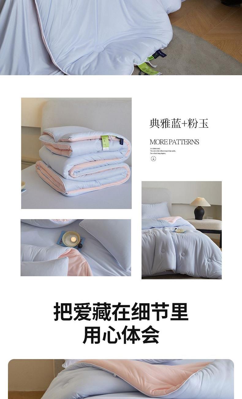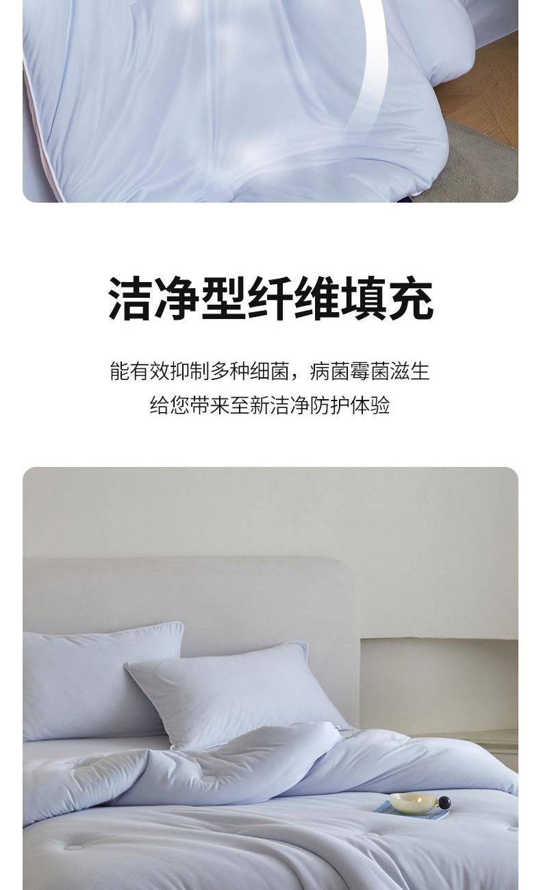 材质:针织棉(聚酯纤维) 填充:羽丝棉 尺寸:200×230cm 产品说明: 1.针织国标A类呵护敏感肌,软呼呼,懦叽叽 2.云般端的温柔庇护,超柔软肤感自在安心。 3. casor洁净型纤维填充+防螨+控敏