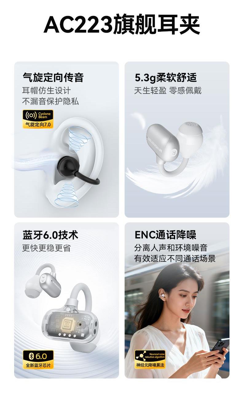 • 气旋定向传音,耳帽仿生涉及,不漏音保护隐私