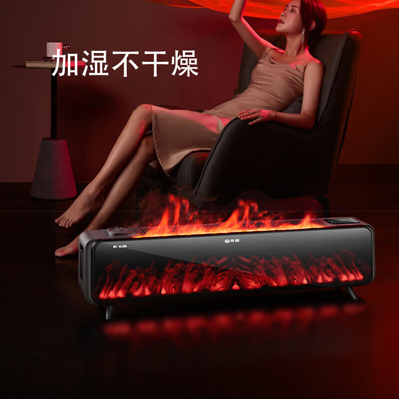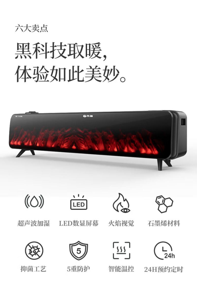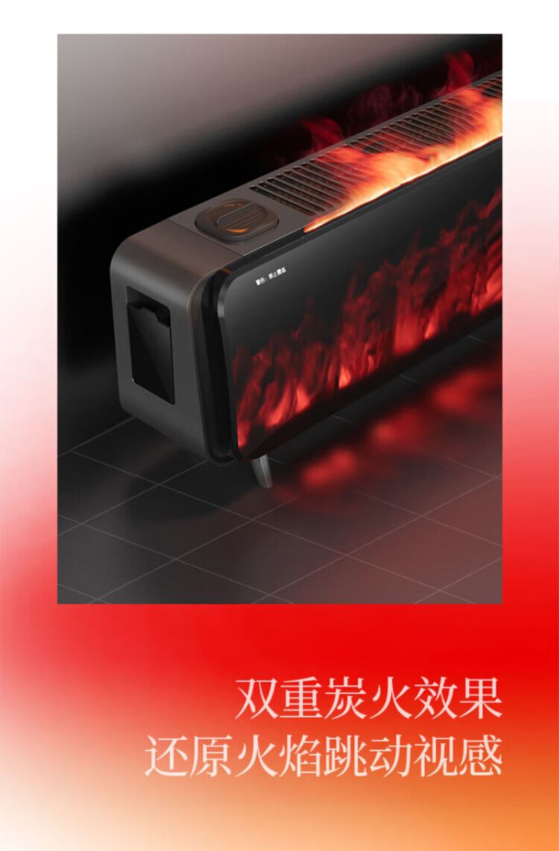 仿真炭火+火焰视觉显示(都可独立控制) IPX4级防水 智能休眠(3分钟无操作自动熄屏) 童锁 88片铝翅石墨烯发热体 大面积超声波(火焰)加湿 (独立控制、缺水断电保护) 触屏操控+5米远距离遥控 LED数码显示屏 定时(开、关机24小时) 双突跳温控+万向倾倒开关 (三重保护)