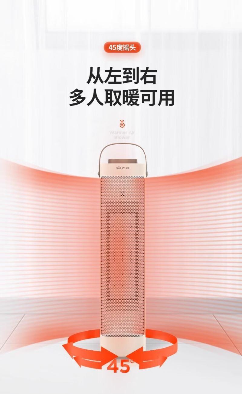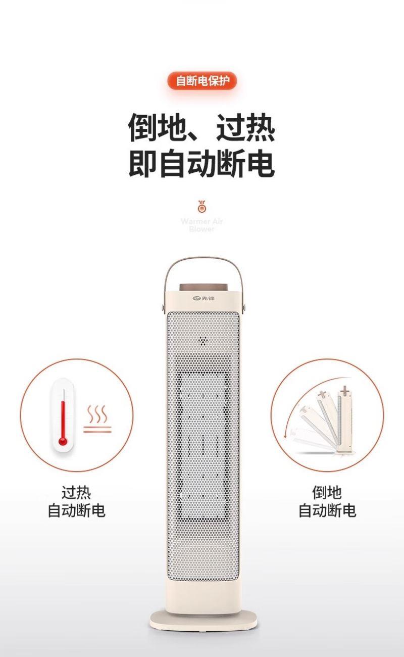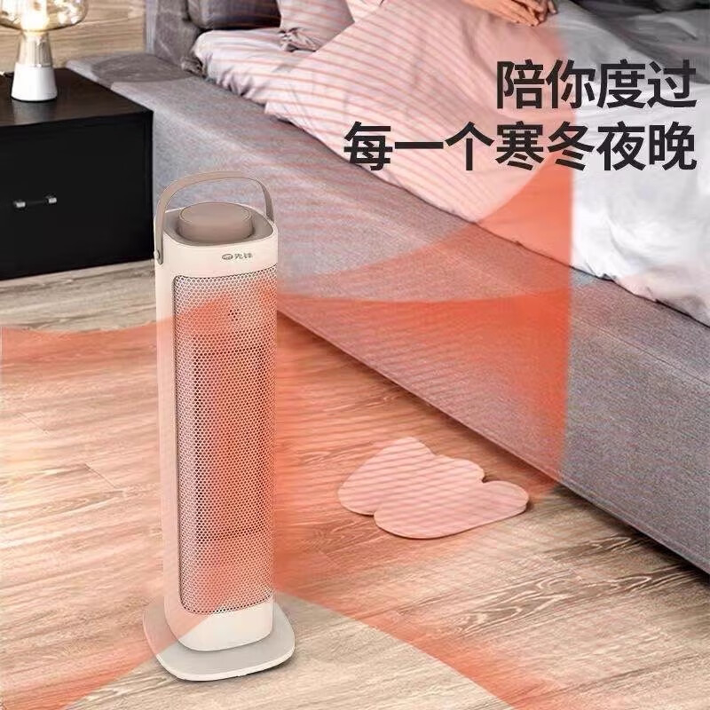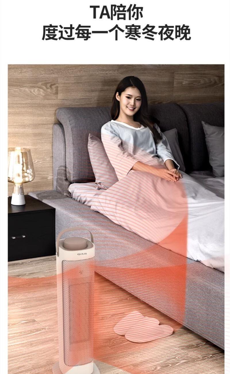 石墨烯前网 PTC陶瓷发热体,热量大,持久热源,寿命长 直流风机,低噪音,运行平稳,寿命长 一开就热,无光不刺眼 日系风格、极简高颜值 顶部超大旋钮设计,档位、摇头一个旋钮搞定 人性化皮质提手设计,移动更方便 超大出风口 左右45°摇头