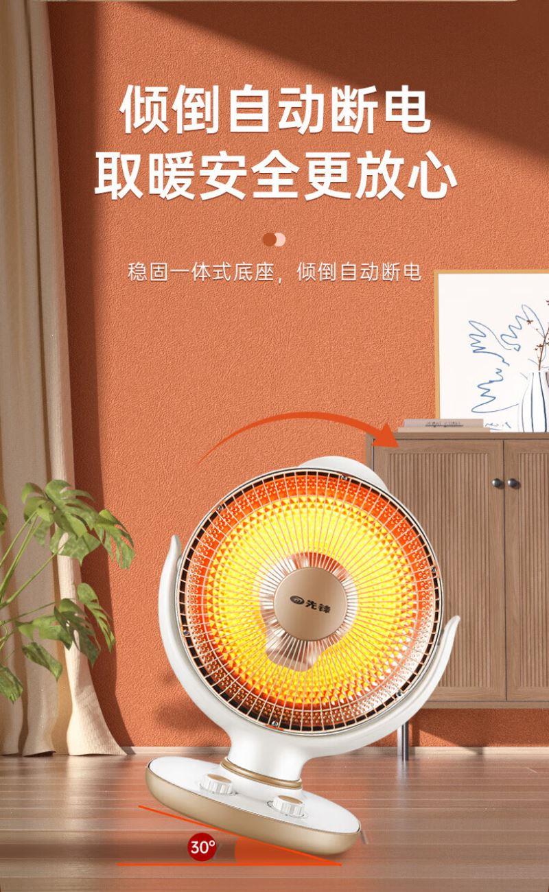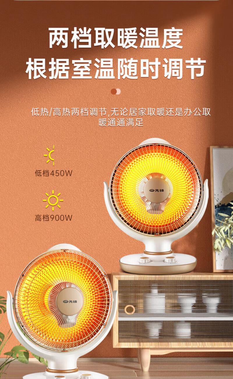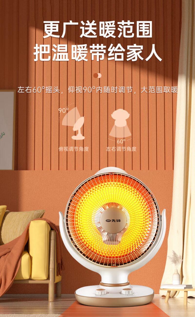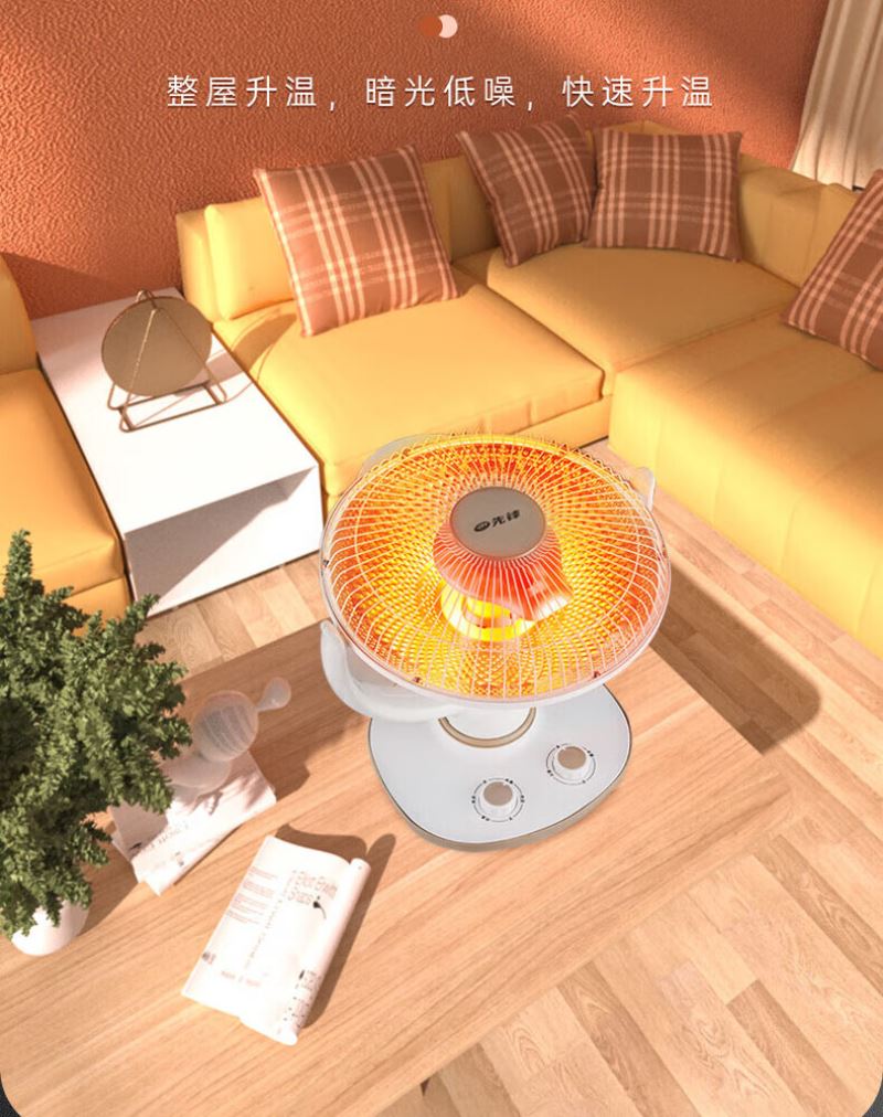 基本参数:产品尺寸为 410mm×290mm×490mm,重量 1.2kg,颜色为白色,发热管材质是碳纤管,温控方式为机械式。 功率参数:额定电压 220V/50Hz,额定功率 900W,有 2 个档位。 功能参数:支持摇头功能,具备倾倒保护功能,加热方式为远红外加热,适用面积为 5-10 平方米。 产品特点:台立两用设计,使用灵活,可根据需求放置。碳纤管加热,能快速升温,通过远红外传热,可实现局部快速取暖。