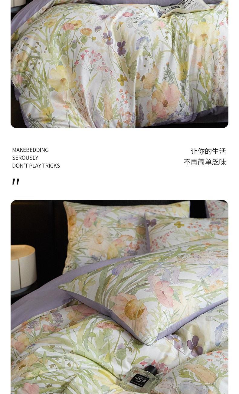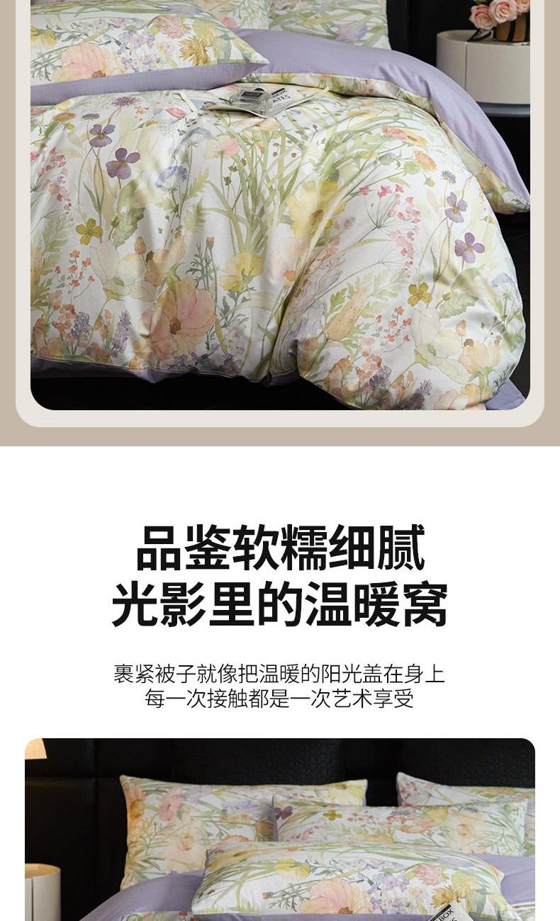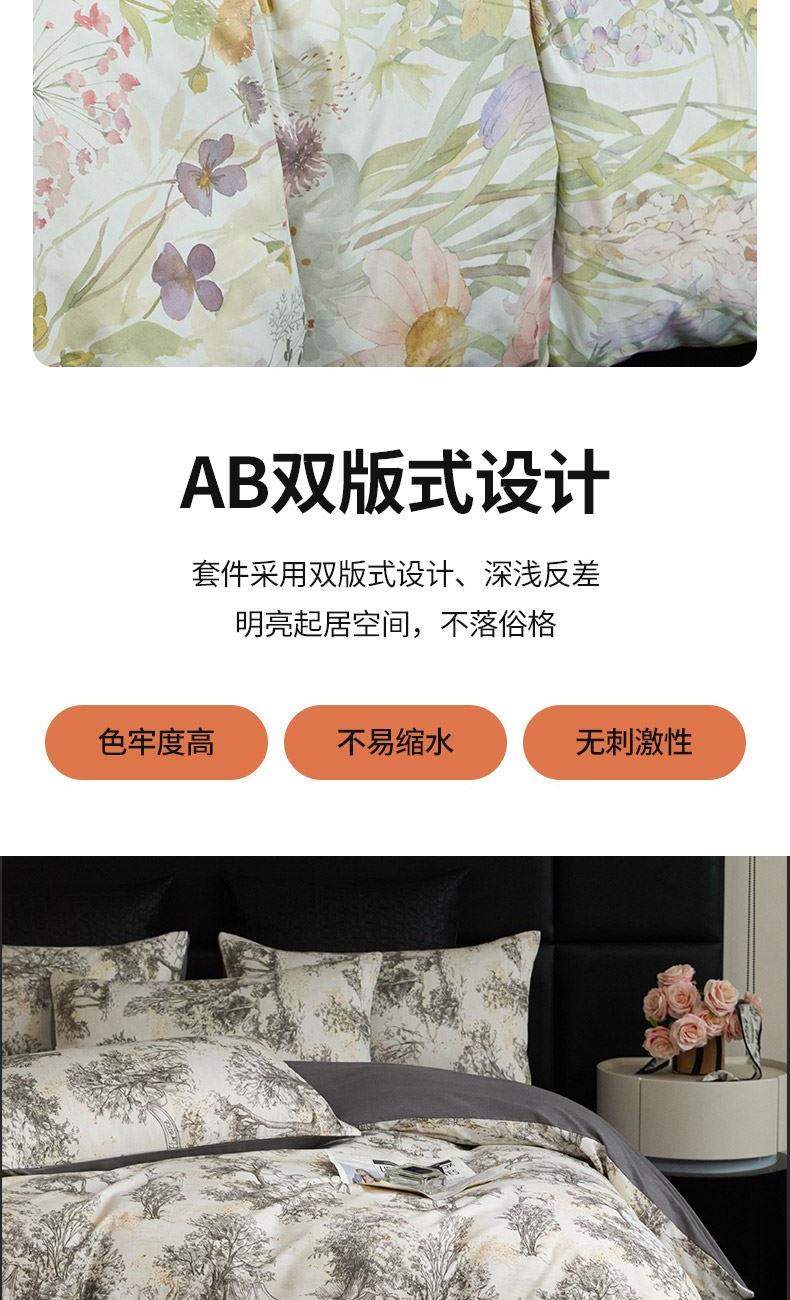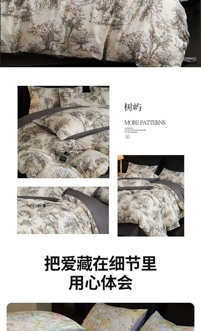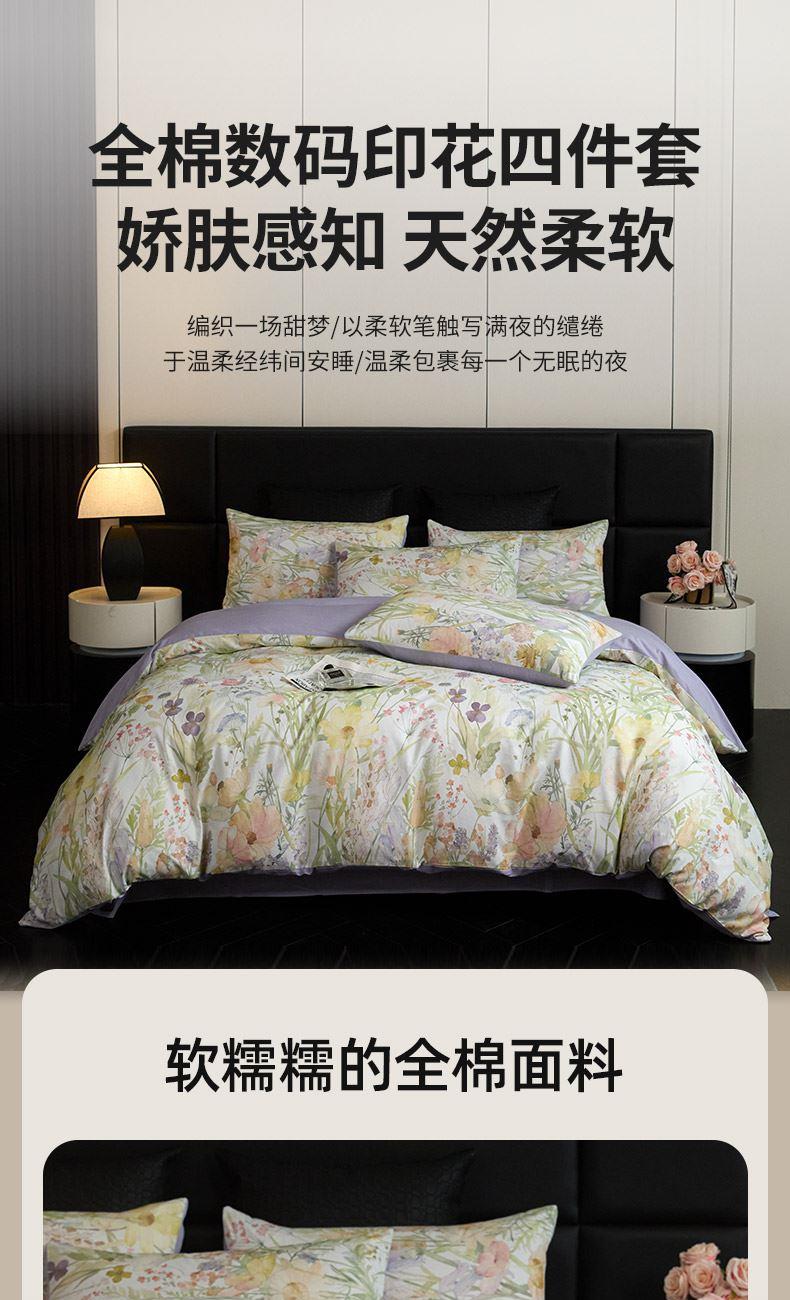 材质:40支精梳棉 规格:被套:200*230cm 床单:230*245cm 枕套:48*74cm*2 产品说明: 1.面料采用纯棉,喷气制造,高品质活性印花面料 2.绿色环保的活性印花技术,具有色泽亮丽,手感柔软细腻,实用后感觉温暖舒适,是您舒适家居生活的必备良品。